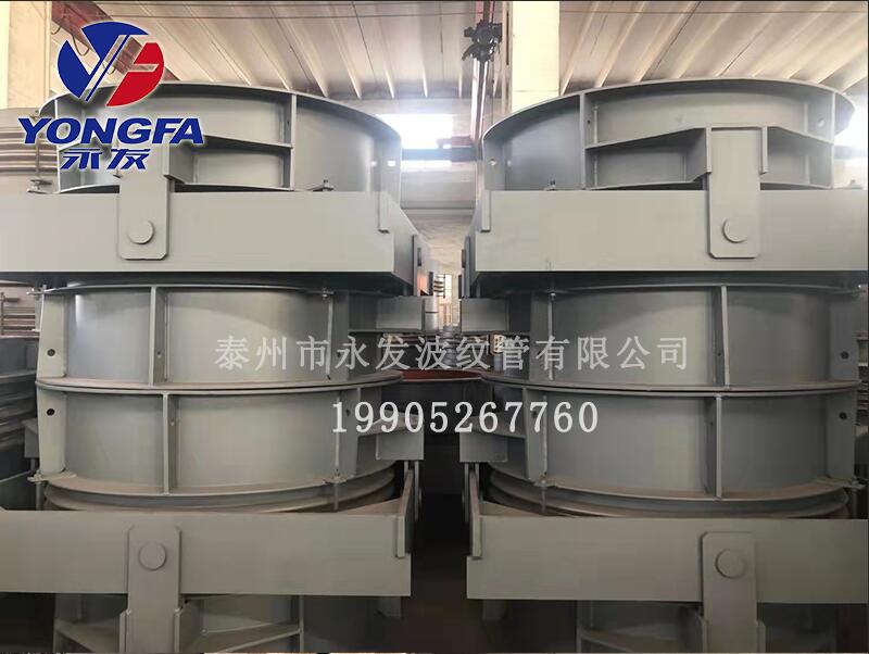 由一個波紋管及銷軸、鉸鏈板、萬向環(huán)和立板等結(jié)構(gòu)組成,能吸收任一平而內(nèi)角位移并能承受波紋管壓力推力的膨脹節(jié)可吸收任意一個平面的角位移,能承受管道內(nèi)壓推力。性能特點:以兩個或三個補償器配套使用,用以吸收單平面內(nèi)的橫向變形;萬向鉸鏈(角向)補償器,由兩個或三個配套使用,可吸收三維方向的變形量